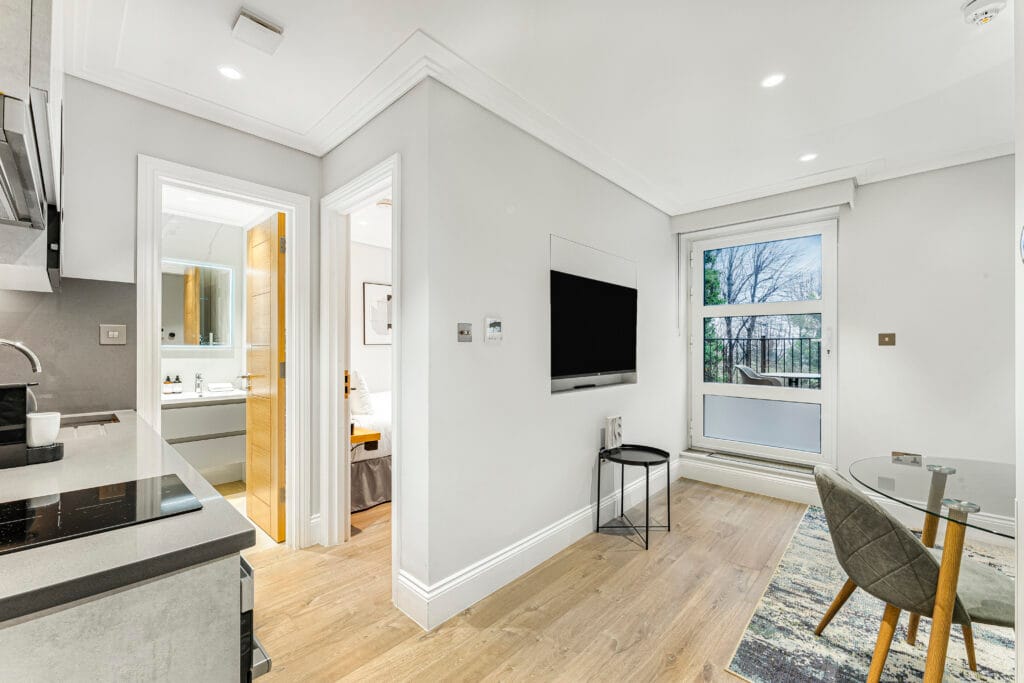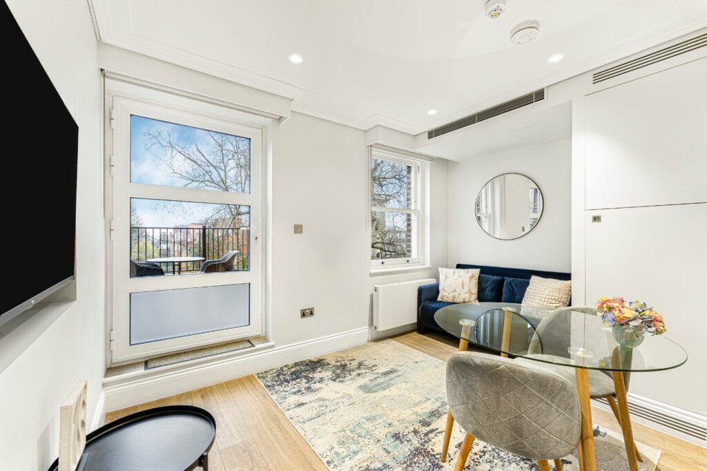 Our Apartment with Balcony is a one-bedroom apartment and features a beautiful, large private balcony which overlooks the beautiful Hampstead gardens.